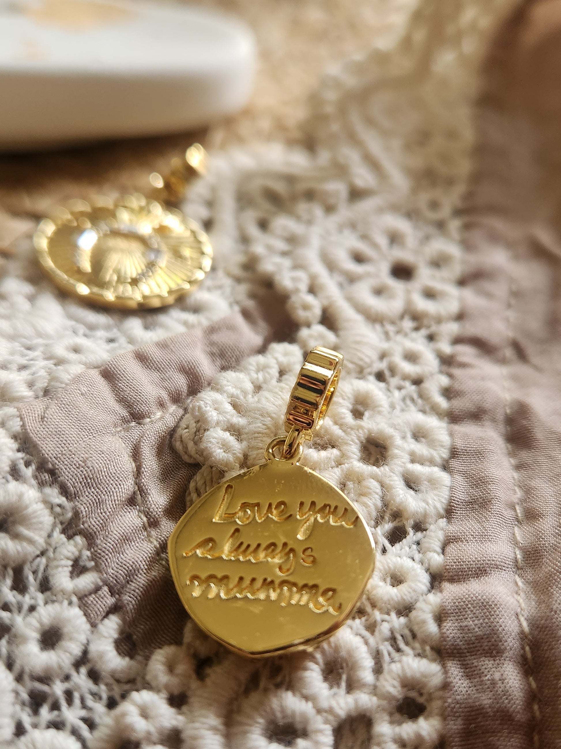 Choose your charm. Choose your design. Customize the design with us from scratch. Add your handwriting message on one side. and design on the other.
